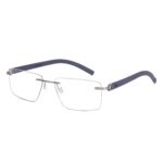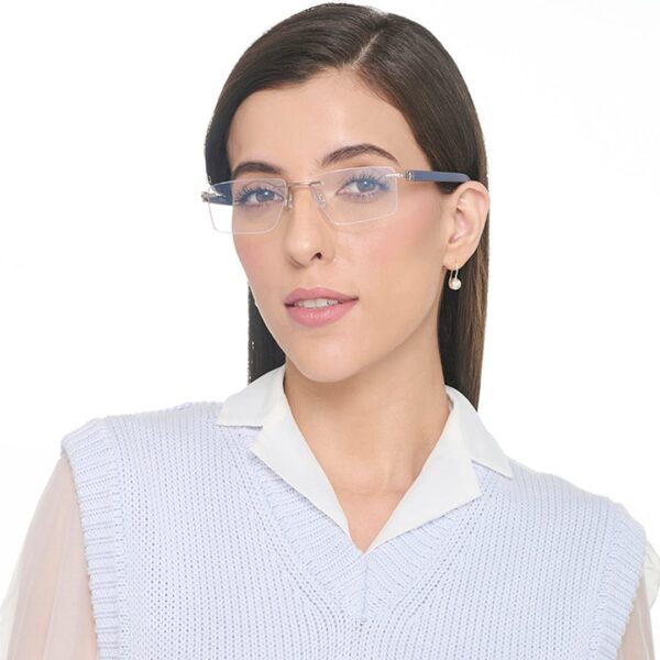 Silver Blue Rimless Rectangle Eyzakart Air Rimless-Hindar LA E000295 Eyeglasses