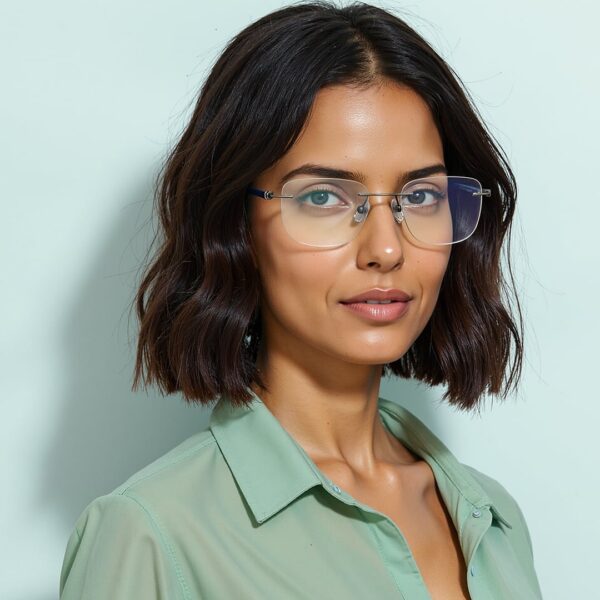| About the Product | Silver Blue Rimless Square Eyzakart Air LA E18566 Eyeglasses |